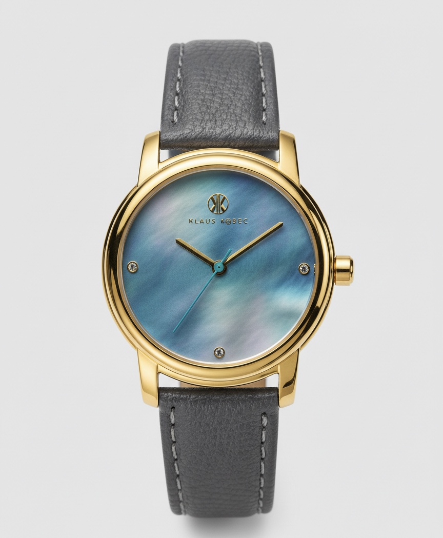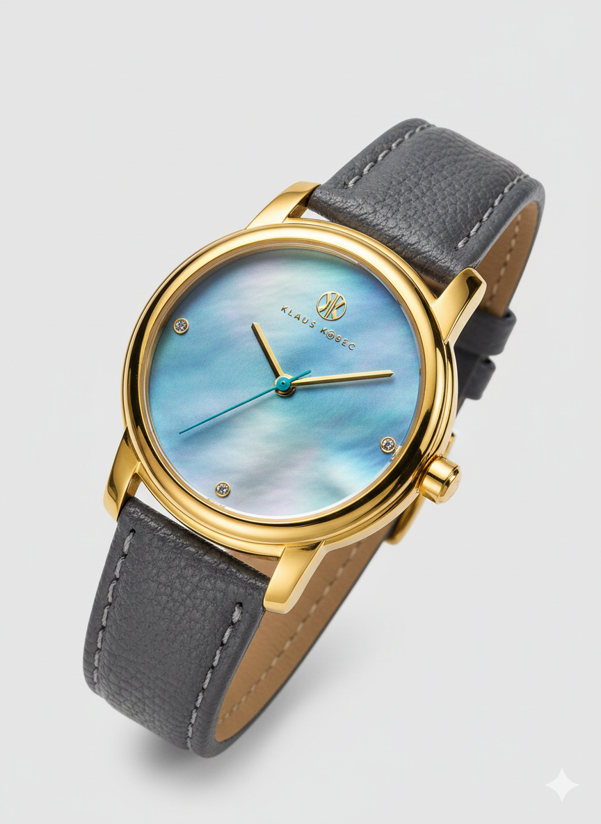 Klaus Kobec – London – women’s analog watch with a gold-tone case, blue mother-of-pearl dial – Random leather strap